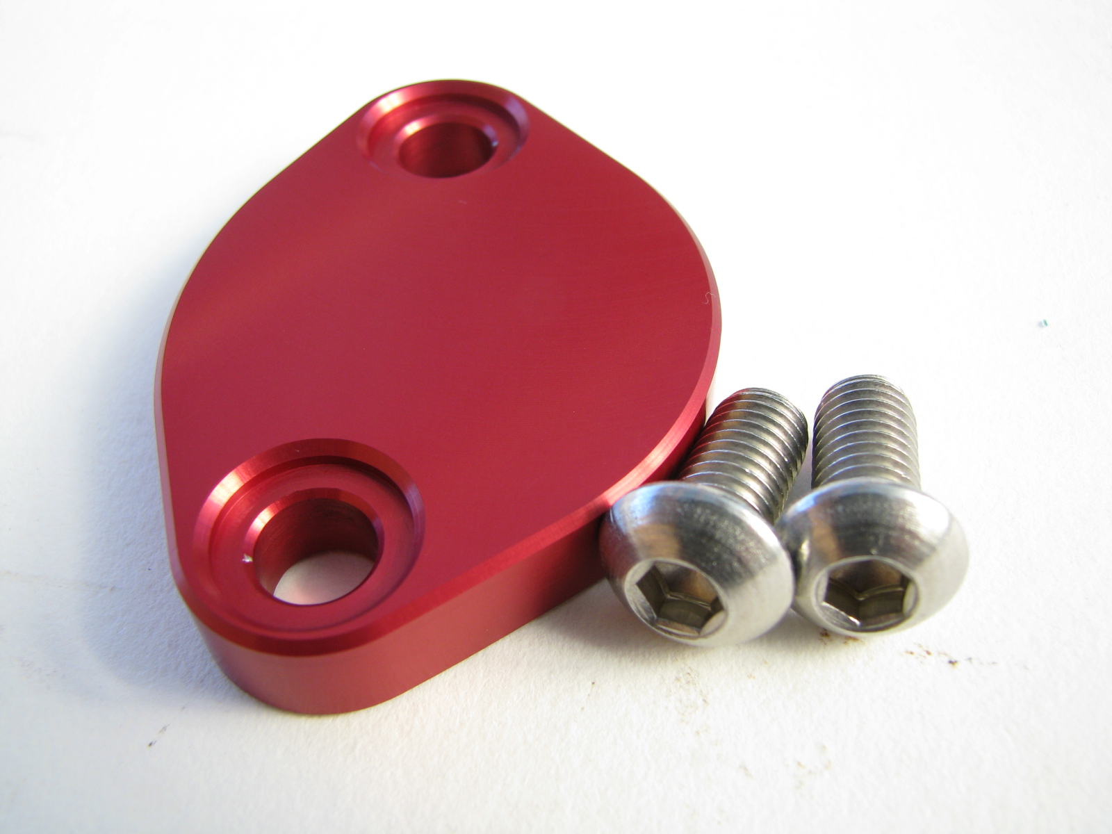 Fuel pump block off, made from 3/8 6061-T6 plate right here in the USA. Stainless hardware included. No gasket needed these are machined flat on the bottom, just use the sealant of your choice.